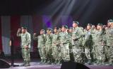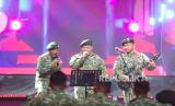 Panglima Kostrad (Pangkostrad) Letnan Jenderal TNI Muhammad Saleh Mustafa (kiri) bersama Kapolri Jenderal Polisi Listyo Sigit Prabowo (tengah) dan Panglima TNI Jenderal Agus Subiyanto bernyanyi bersama saat syukuran peringatan HUT Ke-63 Kostrad tahun 2024, bertempat di  Beach City Internasional Stadium Ancol. Jakarta Utara. Rabu (6/3/2024). Hadir dalam acara HUT Kostrad Panglima TNI Jenderal TNI Agus Subiyanto, Kapolri Jenderal Polisi Drs. Listyo Sigit Prabowo, M.Si., KASAD Jenderal TNI Maruli Simanjuntak, M.Sc dan dan Jenderal TNI (Purn.) Wiranto. (FOTO : Dok Republika)