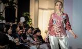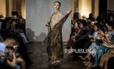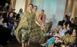 REPUBLIKA.CO.ID, JAKARTA. -- Model memperagakan busana batik koleksi Batik Danar Hadi di Jakarta, Kamis (7/3/2024).