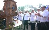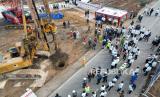 Proses Ground Breaking Pemasangan tiang pancang pertama Pembangunan Flyover Sei Ladi, Senin (4/3/2024). Pemecahan kendi menjadi penanda dimulainya Ground Breaking Pemasangan tiang pancang pertama Flyover Sei Ladi, dengan bore pile. Proyek ini ditargetkan akan selesai pada Desember 2024. Realisasi Pembangunan flyover Sei Ladi akan mengurai salah satu titik kemacetan yang paling signifikan, yakni arah Sekupang – Batam Centre, dan juga akan mendukung konektivitas dan distribusi logistik industri dari dan ke Pelabuhan ataupun ke Bandara nantinya. (FOTO : Dok Republika)