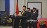 Anggota DPR Fraksi Partai Persatuan Pembangunan (PPP) Amir Uskara mengikuti Upacara Pengucapan Sumpah/Janji Wakil Ketua MPR di Gedung Nusantara IV, Kompleks Parlemen, Senayan, Jakarta, Jumat (8/3/2024). Amir Uskara resmi dilantik menjadi Wakil Ketua MPR RI menggantikan posisi Arsul Sani yang saat ini menjabat sebagai hakim Mahkamah Konstitusi. (FOTO : Republika/Prayogi)