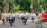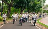 Komisari Utama InJourney Triawan Munaf, Direktur Utama InJourney Dony Oskaria, dan Direktur Pemasaran & Program InJourney Maya Watono bersepeda sambil membawa bibit tanaman untuk ditanam di area TMII, Jakarta, Jumat (8/3/2024). Sebanyak 15,000 pohon ditanam secara serentak oleh jajaran manajemen & karyawan grup InJourney di seluruh wilayah operasionalnya di Indonesia. Kegiatan ini dilakukan dalam rangka mendukung misi InJourney untuk membangun ekosistem pariwisata berkelanjutan di Indonesia melalui penerapan inisiatif hijau di setiap aspek operasional InJourney dengan memiliki 3 pilar yakni Sustainable Operations, Sustainable Tourism Destinations, dan Sustainable Environment. (FOTO : Dok Republika)