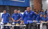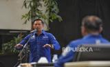 Ketua Umum Partai Demokrat Agus Harimurti Yudhoyono (AHY) bersiap berpidato dalam acara Silaturahmi Bersama Ketua Umum Partai Demokrat dan Pengurus DPP di Kantor DPP Partai Demokrat, Jakarta, Jumat (8/3/2024). Dalam kesempatan tersebut AHY turut menyampaikan detik-detik dirinya bergabung dan menjadi Menteri ATR/BPN dalam pemerintahan Presiden Jokowi. AHY juga meminta para kadernya ikut mengawal agar Presiden Joko Widodo bisa menyelesaikan pemerintahannya dengan baik. (FOTO : Republika/Prayogi)