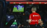 Wasit Javier Iglesias Villanueva memeriksa layar VAR saat pertandingan sepak bola La Liga Spanyol antara Barcelona dan Mallorca di stadion Olimpic Lluis Companys di Barcelona, Spanyol, Sabtu (9/3/2024) dini hari WIB. (FOTO : AP Photo/Joan Monfort)