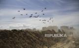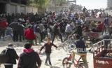 Warga Palestina berebut mendapatkan bantuan kemanusiaan yang dijatuhkan Angkatan Udara AS ke Kota Gaza, Jalur Gaza, pada Sabtu, (9/3/2024). (FOTO : AP)