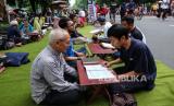 REPUBLIKA.CO.ID, SOLO -- Warga belajar membaca Al Quran dan pengenalan huruf hijaiyah saat Hari Bebas Kendaraan Bermotor (HBKB) di Solo, Jawa Tengah, Ahad (10/3/2024).