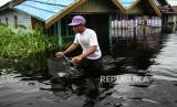 REPUBLIKA.CO.ID, PALANGKA RAYA -- Seorang warga mengendarai sepeda melewati banjir di Jalan Anoi, Palangka Raya, Kalimantan Tengah, Ahad (10/3/2024).