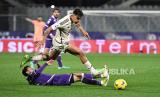 Pemain depan Fiorentina Riccardo Sottil (kiri) beraksi pada pertandingan sepak bola Serie A Italia ACF Fiorentina vs AS Roma di Stadion Artemio Franchi di Florence, Italia, Senin (11/3/2024) dini hari WIB. (FOTO : ANSA)