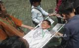 Pelajar menggotong korban bencana kebakaran dalam kegiatan bertajuk Belajar Menjadi Relawan Kemanusiaan di SD Islam Terpadu (IT) Ahmad Yani, Malang, Jawa Timur, Selasa (12/3/2024). Kegiatan tersebut merupakan rangkaian acara Ramadhan Kids Sahabat Surga (RKSS) yang diadakan selama dua hari untuk mengenalkan dan memberikan pengetahuan tentang cara penanganan korban maupun penanggulangan bencana kepada 60 siswa sebagai implementasi pengaplikasian ayat suci Al Quran dalam kehidupan bermasyarakat. (FOTO : ANTARA FOTO/Ari Bowo Sucipto)