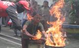 Petugas Pemadam Kebakaran menunjukkan cara memadamkan api dalam kegiatan bertajuk Belajar Menjadi Relawan Kemanusiaan di SD Islam Terpadu (IT) Ahmad Yani, Malang, Jawa Timur, Selasa (12/3/2024). Kegiatan tersebut merupakan rangkaian acara Ramadhan Kids Sahabat Surga (RKSS) yang diadakan selama dua hari untuk mengenalkan dan memberikan pengetahuan tentang cara penanganan korban maupun penanggulangan bencana kepada 60 siswa sebagai implementasi pengaplikasian ayat suci Al Quran dalam kehidupan bermasyarakat. (FOTO : ANTARA FOTO/Ari Bowo Sucipto)