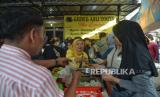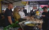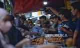 Pedagang melayani pembeli makanan untuk berbuka puasa (takjil) di Kawasan Bendungan Hilir (Benhil), Jakarta, Selasa (12/3/2024). Pasar musiman selama bulan suci Ramadhan tersebut menjadi pusat berburu beraneka ragam jajanan dan masakan dari berbagai daerah di Indonesia sebagai menu buka puasa. (FOTO : Republika/Prayogi)