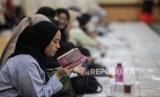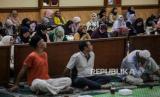 Warga membaca Al Quran sambil menunggu waktu buka puasa bersama di Masjid Agung Al Azhar, Jakarta, Rabu (13/3/2024). Masjid Agung Al Azhar menyediakan 700 paket makanan berupa takjil dan makanan berat setiap harinya untuk umat Muslim yang ingin berbuka puasa di masjid tersebut selama bulan suci Ramadhan 1445 Hijriah. (FOTO : Republika/Putra M. Akbar)