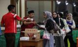 Warga mengambil takjil untuk buka puasa bersama di Masjid Agung Al Azhar, Jakarta, Rabu (13/3/2024). Masjid Agung Al Azhar menyediakan 700 paket makanan berupa takjil dan makanan berat setiap harinya untuk umat Muslim yang ingin berbuka puasa di masjid tersebut selama bulan suci Ramadhan 1445 Hijriah. (FOTO : Republika/Putra M. Akbar)