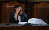 Penasihat hukum terdakwa Sekretaris Mahkamah Agung (MA) nonaktif Hasbi Hasan menyimak pembacaan tuntutan di Pengadilan Negeri Tipikor, Jakarta Pusat, Kamis (14/3/2024). Jaksa penuntut umum (JPU) Komisi Pemberantasan Korupsi (KPK) menuntut terdakwa Hasbi Hasan dipidana selam 13 tahun dan 8 bulan penjara, denda Rp 1 miliar subsider 6 bulan kurungan, serta membayar uang pengganti sebesar Rp3,88 miliar subsider 3 tahun kurungan. Dalam perkara tersebut, Hasbi Hasan dinilai terbukti secara sah dan meyakinkan hukum telah menerima suap penanganan perkara kasasi Koperasi Simpan Pinjam (KSP) Intidana yang bergulir di MA. (FOTO : Republika/Thoudy Badai)