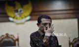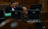 Terdakwa Sekretaris Mahkamah Agung (MA) nonaktif Hasbi Hasan menjalani sidang pembacaan tuntutan di Pengadilan Negeri Tipikor, Jakarta Pusat, Kamis (14/3/2024). Jaksa penuntut umum (JPU) Komisi Pemberantasan Korupsi (KPK) menuntut terdakwa Hasbi Hasan dipidana selam 13 tahun dan 8 bulan penjara, denda Rp 1 miliar subsider 6 bulan kurungan, serta membayar uang pengganti sebesar Rp3,88 miliar subsider 3 tahun kurungan. Dalam perkara tersebut, Hasbi Hasan dinilai terbukti secara sah dan meyakinkan hukum telah menerima suap penanganan perkara kasasi Koperasi Simpan Pinjam (KSP) Intidana yang bergulir di MA. (FOTO : Republika/Thoudy Badai)