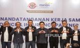 REPUBLIKA.CO.ID, JAKARTA -- Ketua Umum PSSI Erick Thohir bersama Direktur Utama Mandiri Inhealth Budi Tampubolon, Wakil Komisaris Utama Bank Mandiri Zainudin Amali dan Direktur Pemasaran Mandiri Inhealth Bugi Riagandhy menghadiri penandatanganan kerja sama di Jakarta, Kamis (14/3/2024).