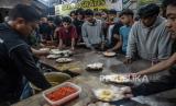 REPUBLIKA.CO.ID, PALU -- Warga memadati Posko Sahur Gratis untuk mengambil dan menyantap makanan sahur di Palu, Sulawesi Tengah, Jumat (15/3/2024). Posko Sahur Gratis yang diinisiasi Himpunan Pemuda Alkhairaat (HPA) Pusat Palu dan dibuka selama Ramadhan itu menghabiskan lebih dari tujuh karung beras setiap malamnya untuk melayani ribuan warga makan sahur secara gratis.