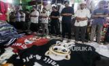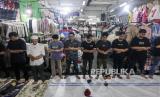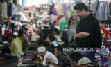 Pelaksanaan Sholat Jumat yang diikuti oleh para pedagang dan pembeli di Pasar Tanah Abang. Mereka menghentikan sejenak kegiatan transaksi jual beli.