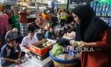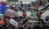 Sejumlah umat muslim menunggu pelaksanaan Sholat Jumat berjamaah di Pasar Tanah Abang, Jakarta, Jumat (15/3/2024). Sholat Jumat pertama pada bulan Ramadhan 1445 Hijriah di Masjid Nurul Muhajirin tersebut dilaksanakan hingga ke lorong pasar yang diubah menjadi area shaf. Pelaksanaan Sholat Jumat yang diikuti oleh para pedagang dan pembeli di Pasar Tanah Abang tersebut menghentikan sejenak kegiatan transaksi jual beli. (FOTO : Republika/Putra M. Akbar)