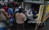 Warga antre membeli beras di Bazar Ramadhan 1445 H, di Halaman Kantor Bulog Kanwil Jawa Barat (Jabar), Jalan Soekarno Hatta, Kota Bandung, Jumat (15/3/2024). Kegiatan yang bertajuk Tebar Hikmah Ramadhan (THR) ini terbuka untuk masyarakat umum dan menyediakan berbagai komoditas. Mulai dari beras, serta bahan kebutuhan pokok lain yang dibanderol dengan harga lebih terjangkau dari pasaran. Bazar berlangsung dari tanggal 15 Maret hingga 15 April 2024. (FOTO : Edi Yusuf/Republika)