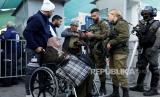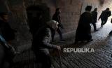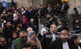 Umat Islam berada di pos pemeriksaan untuk masuk Masjid Al-Aqsa, Yerusalem, Jumat (15/3/2024). Israel melakukan berbagai pembatasan untuk umat muslim masuk ke masjid Al-Aqsa di hari Jumat pertama bulan suci Ramadhan. Jamaah wajib mendapatkan surat izin dan kartu magnet valid untuk bisa masuk ke masjid. Tentara Israel juga memasang penghalang di tiga gerbang menuju masjid Al-Aqsa. Sholat Jumat awal Ramadhan di masjid Al-Aqsa terlihat dihadiri ribuan umat muslim. (FOTO : REUTERS/Yosri Aljamal)