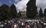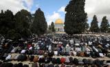 Sholat Jumat awal Ramadhan di masjid Al-Aqsa terlihat dihadiri ribuan umat muslim.