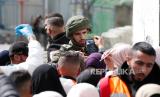 Tentara Israel memeriksa umat Islam saat akan melakukan ibadah sholat Jumat awal Ramadhan di Masjid Al-Aqsa, Yerusalem, Jumat (15/3/2024). Israel melakukan berbagai pembatasan untuk umat muslim masuk ke masjid Al-Aqsa di hari Jumat pertama bulan suci Ramadhan. Jamaah wajib mendapatkan surat izin dan kartu magnet valid untuk bisa masuk ke masjid. Tentara Israel juga memasang penghalang di tiga gerbang menuju masjid Al-Aqsa. Sholat Jumat awal Ramadhan di masjid Al-Aqsa terlihat dihadiri ribuan umat muslim. (FOTO : REUTERS/Yosri Aljamal)
