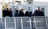 Perempuan Palestina menunggu untuk bisa masuk ke dalam Masjid Al-Aqsa, Yerusalem, Jumat (15/3/2024). Israel melakukan berbagai pembatasan untuk umat muslim masuk ke masjid Al-Aqsa di hari Jumat pertama bulan suci Ramadhan. Jamaah wajib mendapatkan surat izin dan kartu magnet valid untuk bisa masuk ke masjid. Tentara Israel juga memasang penghalang di tiga gerbang menuju masjid Al-Aqsa. Sholat Jumat awal Ramadhan di masjid Al-Aqsa terlihat dihadiri ribuan umat muslim. (FOTO : AP Photo/Nasser Nasser)