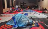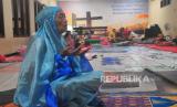 REPUBLIKA.CO.ID, KUDUS -- Pengungsi berdoa setelah menjalankan shalat subuh di ruang aula Gereja Kristen Muria Indonesia (GKMI) Tanjung Karang, Jati, Kudus, Jawa Tengah, Sabtu (16/3/2024). Menurut pendeta gereja setempat, gereja yang telah difungsikan untuk posko pengungsian saat bencana sejak 1970 tersebut saat ini menampung sebanyak 89 pengungsi korban banjir.