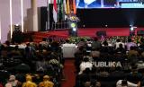 REPUBLIKA.CO.ID, JAKARTA -- Ketua Umum PP Muhammadiyah Haedar Nashir menyampaikan pidato tentang dakwah kultural saat acara Pengajian Ramadhan di Auditorium KH A Azhar Basyir Universitas Muhammadiyah Jakarta, Ciputat, Tangerang Selatan, Banten, Senin (18/3/2024).