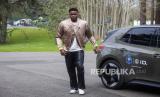 Pemain sepak bola Prancis Brice Samba tiba di kompleks latihan tim nasional menjelang sesi latihan di Clairefontaine-en-Yvelines, selatan Paris, Prancis, Senin (18/3/2024). (FOTO : EPA)