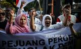 Massa menggelar aksi saat menunggu keputusan hasil rekapitulasi hasil Pemilu 2024 di depan kantor KPU, Jakarta, Rabu (30/3/2024). Dalam aksi tersebut Polda Metro Jaya juga  memperkuat pengamanan terkait putusan rekapitulasi hasil Pemilu 2024 di gedung KPU RI, Menteng, Jakarta Pusat dengan menerjunkan sebanyak 4.376 personel. Terdapat dua kelompok yang menggelar aksi di KPU hari ini, pertama massa aksi yang menolak hasil pemilu, kedua massa yang mendukung hasil pemilu, kedua massa berunjuk rasa dengan jarak sekitar 200 meter. (FOTO : Republika/Thoudy Badai)