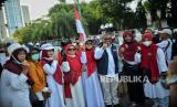 REPUBLIKA.CO.ID,  JAKARTA. --  Massa menggelar aksi saat menunggu keputusan hasil rekapitulasi hasil Pemilu 2024 di depan kantor KPU, Jakarta, Rabu (30/3/2024).