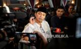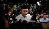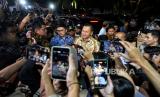 Ketua Umum PAN Zulkifli Hasan menjawab pertanyaan jurnalis saat tiba di kediaman Prabowo Subianto di Jalan Kertanegara IV, Jakarta, Rabu (20/3/2024). Zulhas hadir di kediaman Prabowo dalam rangka acara buka puasa bersama dan menyambut pengumuman hasil Pemilu 2024 oleh KPU RI. (FOTO : Republika/Thoudy Badai)
