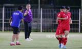 Latihan timnas Vietnam dipimpin pelatih Philippe Troussier. Vietnam akan menghadapi Indonesia di Stadion Gelora Bung Karno Senayan, Jakarta, Kamis (21/3/2024) malam.