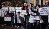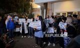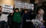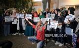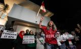 Para relawan menolak hasil akhir penetapan rekapitulasi penghitungan suara KPU yang memenangkan pasangan calon nomor urut 02 Prabowo Subianto dan Gibran Rakabuming Raka.