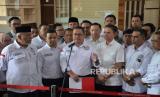 Para petinggi Timnas AMIN bersama Tim Hukum Timnas AMIN saat menghadiri pengajuan permohonan perselisihan hasil pemilihan umum (PHPU) Pilpres 2024 di Mahkamah Konstitusi (MK), Jakarta, Kamis (21/3/2024). Pasangan Calon Presiden dan Wakil Presiden nomor urut 1 Anies Baswedan dan Muhaimin Iskandar resmi menggugat hasil Pilpres 2024 yang baru saja ditetapkan KPU ke Mahkamah Konstitusi (MK). Timnas yakin bahwa bukti-bukti dan saksi yang ada sudah lengkap dan matang. (FOTO : Republika/Prayogi)