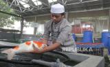 Santri memeriksa kondisi ikan koi yang dibudidayakan di Pondok Pesantren Bahrul Maqfiroh, Malang, Jawa Timur, Kamis (21/3/2024). Santri di pondok pesantren tersebut mengelola unit usaha berupa budi daya ikan koi dan hasilnya dijual ke berbagai kota di Indonesia sebagai bibit dengan harga Rp1.000 per ekor dan ikan kontes dengan harga Rp7 jt per ekor sehingga kini mampu memiliki omzet rata-rata Rp20 juta per bulan. (FOTO : ANTARA FOTO/Ari Bowo Sucipto)