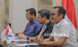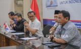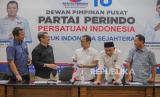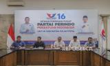 Sekjen DPP Partai Perindo Ahmad Rofiq, Waketum DPP Partai Perindo Ferry Kurnia Rizkiyansyah, Ketua DPP Partai Perindo Bidang Politik Yusuf Lakaseng, Ketua DPP Partai Perindo Bidang Hukum dan HAM Tama S Langkun, dan Ketua DPP Partai Perindo Abdul Khaliq Ahmad menggelar jumpa pers di Kantor DPP Partai Perindo, Jakarta, Kamis (21/3/2024). (FOTO : Dok.Republika)