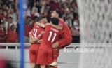 Pemain Timnas Indonesia melakukan selebrasi seusai Egy Maulana Vikri mencetak gol ke gawang Vietnam dalam pertandingan Kualifikasi Piala Dunia 2026 di Stadion Gelora Bung Karno, Senayan, Jakarta, Kamis (21/3/2024). Pada pertandingan itu Indonesia menang dengan skor 1-0. Gol timnas Indonesia lahir dari kaki Egy Maulana Vikri di menit ke-52. (FOTO : Republika/Edwin Dwi Putranto)
