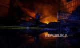 REPUBLIKA.CO.ID, JAKARTA. -- Petugas pemadam kebakaran berupaya memadamkan api yang membakar dua gudang di Jalan Kedaung Kali Angke, Cengkareng, Jakarta Barat, Kamis (21/3/2024).