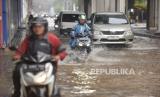 REPUBLIKA.CO.ID, JAKARTA -- Kendaraan menerobos genangan air yang merendam di Jalan Boulevard Raya, Kelapa Gading, Jumat (22/3/2024).