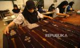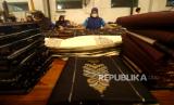 REPUBLIKA.CO.ID, TEGAL. -- Sejumlah pekerja melipat kain sarung di industri sarung Asaputex, Tegal, Jawa Tengah, Jumat (22/3/2024).