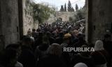 REPUBLIKA.CO.ID, YERUSALEM. -- Jamaah Muslim berjalan ke kompleks Masjid Al-Aqsa untuk sholat Jumat kedua di bulan suci Ramadhan di Kota Tua Yerusalem, Jumat, (22/3/2024).