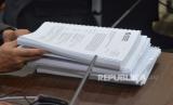 Tim Hukum TPN Ganjar-Mahfud menyerahkan berkas saat mengajukan permohonan perselisihan hasil pemilihan umum (PHPU) Pilpres 2024 di Mahkamah Konstitusi (MK), Jakarta, Sabtu (23/3/2024). Pasangan Calon Presiden dan Wakil Presiden nomor urut 3 Ganjar Pranowo-Mahfud MD resmi menggugat hasil Pilpres 2024 dengan menyerahkan sejumlah dokumen berupa bukti kecurangan Pemilu 2024 yang akan diajukan ke persidangan Mahkamah Konstitusi. (FOTO : Republika/Prayogi)