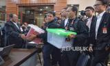 Tim Hukum TPN Ganjar-Mahfud membawa berkas saat mengajukan permohonan perselisihan hasil pemilihan umum (PHPU) Pilpres 2024 di Mahkamah Konstitusi (MK), Jakarta, Sabtu (23/3/2024). Pasangan Calon Presiden dan Wakil Presiden nomor urut 3 Ganjar Pranowo-Mahfud MD resmi menggugat hasil Pilpres 2024 dengan menyerahkan sejumlah dokumen berupa bukti kecurangan Pemilu 2024 yang akan diajukan ke persidangan Mahkamah Konstitusi. (FOTO : Republika/Prayogi)