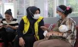 Petugas medis mendengarkan keterangan seorang pekerja migran Indonesia (PMI) yang dideportasi dari Malaysia di Terminal Kedatangan Pelabuhan Pelindo Dumai, Riau, Sabtu (23/3/2024). Sebanyak 69 orang PMI dan seorang bayi berumur dua bulan dideportasi dari Depot Imigrasi Kemayan Pahang Malaysia ke tanah air lewat Pelabuhan Dumai dan saat ini ditempatkan di Pos Pelayanan Perlindungan Pekerja Migran Indonesia (P4MI) Kota Dumai sebelum dipulangkan ke daerah asal. (FOTO : ANTARA FOTO/Aswaddy Hamid)