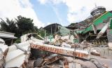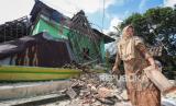 REPUBLIKA.CO.ID, GRESIK -- Warga melintas di dekat Masjid Jamik Al Muhajirin yang sebangian bangunannya roboh akibat gempa di Dusun Balikbakgunung, Sangkapura, Pulau Bawean, Gresik, Jawa Timur, Ahad (24/3/2024).