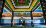 Pengurus masjid mengumandangkan iqomah di Masjid Hidayatunnas di Desa Sirnagalih, Kecamatan Cisurupan, Kabupaten Garut, Jawa Barat, Ahad (24/3/2024). Masjid Hidayatunnas yang dibangun sejak 20 tahun lalu tersebut memiliki corak warna-warni di bagian dalam maupun luar masjid yang menjadi keunikan dan ciri khasnya. (FOTO : ANTARA FOTO/Raisan Al Farisi)