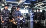 Pangkoarmada I Laksamana Muda TNI Achmad Wibisono (kedua kiri) didampingi Danguskamla Koarmada I Laksamana Pertama TNI Tony Hardijanto (kiri) melakukan Exit Broadcasting saat inspeksi kapal perang (Admiral Inspection) di atas kapal KRI John Lie-358, Kompleks Satuan Kapal Koarmada I Pondok Dayung, Jakarta, Ahad (24/3/2024). Admiral Inspection dan Exit Broadcasting tersebut dilaksanakan dalam rangka jelang serah terima jabatan dari Pangkoarmada I Laksamana Muda TNI Achmad Wibisono ke Danseskoal Laksamana Muda TNI Yoos Suryono Hadi. (FOTO : ANTARA FOTO/Muhammad Adimaja)