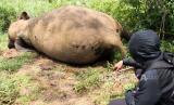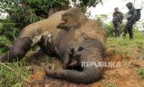 REPUBLIKA.CO.ID, ACEH -- Warga mengamati bangkai gajah Sumatera (Elephas maximus sumatrensis) yang sudah diambil gadingnya di area perkebunan warga KM 35 Dusun Jabal Antara, Kecamatan Nisam Antara, Aceh Utara, Ahad (24/3/2024).